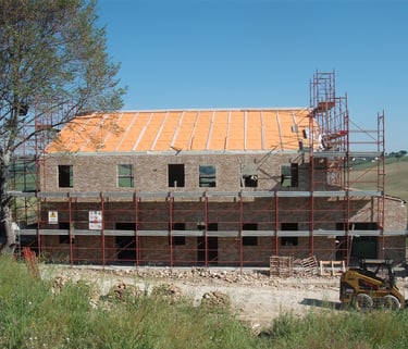 Un elemento distintivo dell’intervento è rappresentato dall’attento recupero e riutilizzo delle pietre in cortina faccia a vista provenienti dalla demolizione dell’edificio esistente. Tutti i mattoni e le finiture originali sono stati selezionati, puliti e riutilizzati per ricostruire fedelmente le facciate, restituendo all’immobile la sua storica matericità e mantenendo la perfetta coerenza con il linguaggio architettonico originario. Grazie a un attento lavoro di rilievo e progettazione, è stato possibile riprodurre fedelmente l’impianto originario, restituendo all’immobile l’aspetto sobrio ed elegante delle case rurali storiche, con muri in mattoni faccia a vista, infissi in legno, e copertura con struttura a vista in legno massello.