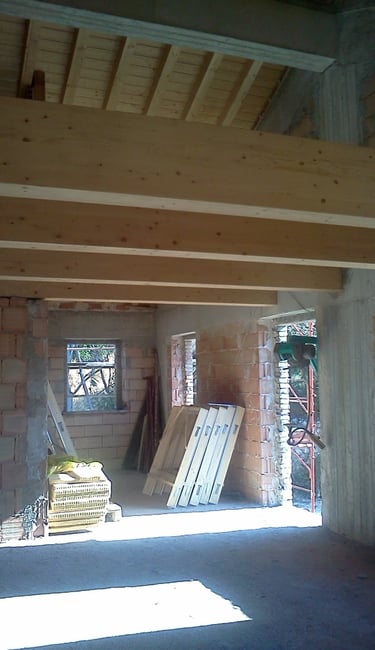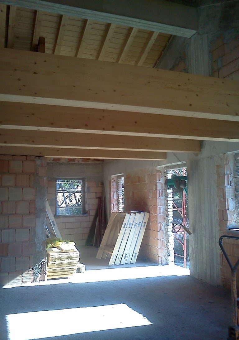 Fondamentale è stato l’intervento di consolidamento del terreno: è stata infatti realizzata una doppia palificata, con funzione sia di contrastare la spinta del terreno sia di garantire stabilità alle fondazioni del nuovo corpo di fabbrica. Il progetto ha coinvolto anche il locale di servizio adiacente alla casa principale, oggetto di una completa ristrutturazione con rifacimento del tetto e nuova distribuzione interna, coerente con l’estetica e le funzionalità dell’abitazione principale. Gli spazi interni, caratterizzati da ampie aperture verso l’esterno, travi a vista e finiture naturali, offrono un ambiente luminoso, accogliente e in pieno dialogo con il contesto paesaggistico. Gli esterni, curati con attenzione, completano il progetto con percorsi in pietra, pergolati, aiuole fiorite e zone relax affacciate sulla campagna.